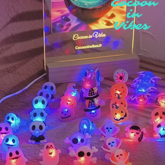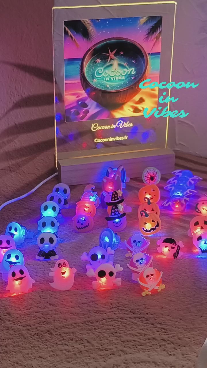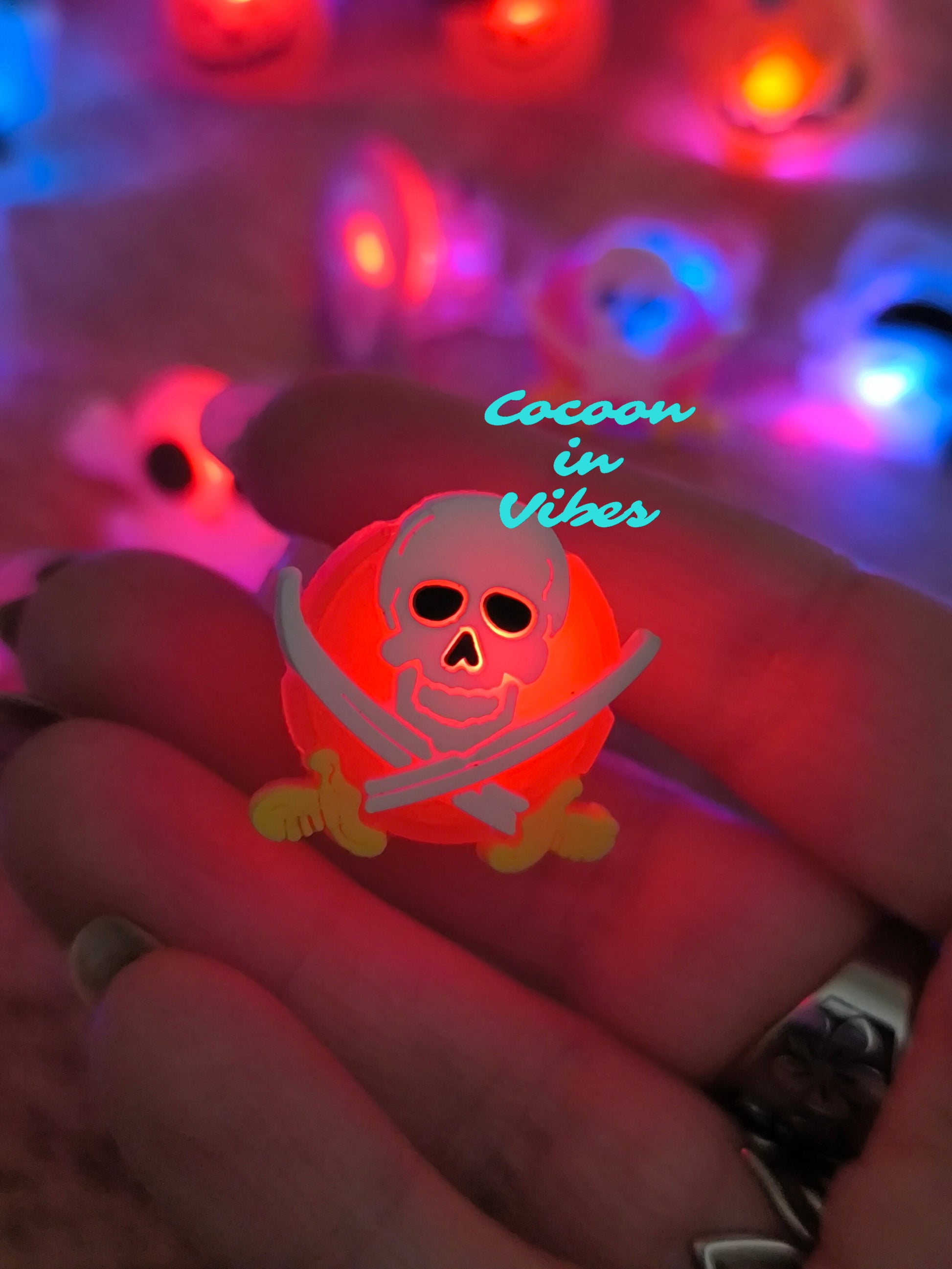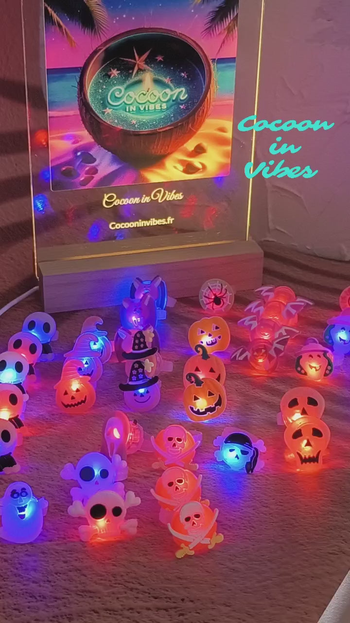 Nos bagues lumineuses spéciales Halloween sont l’accessoire parfait pour ajouter une touche de magie et de fun à la soirée ! Pirates effrayants 🏴☠️, fantômes mystérieux 👻, citrouilles rigolotes 🎃… autant de petits compagnons lumineux pour accompagner les enfants dans leur quête sucrée.