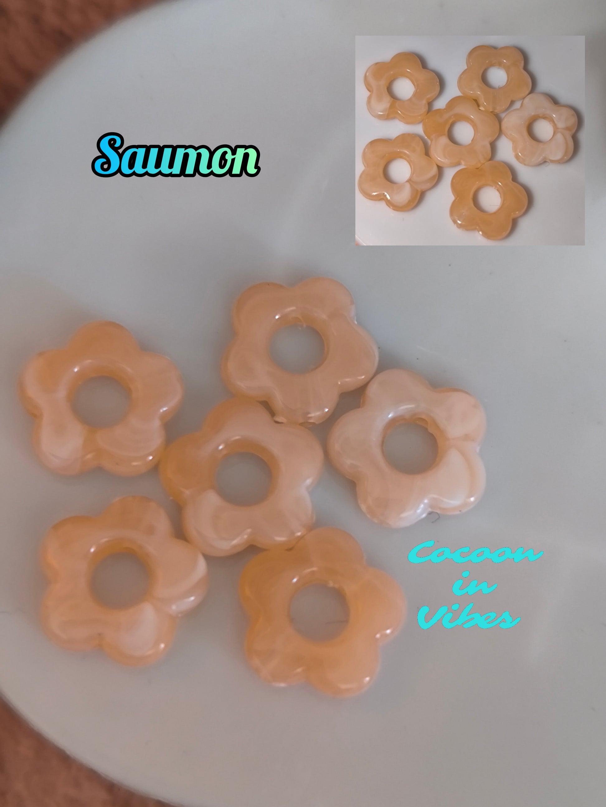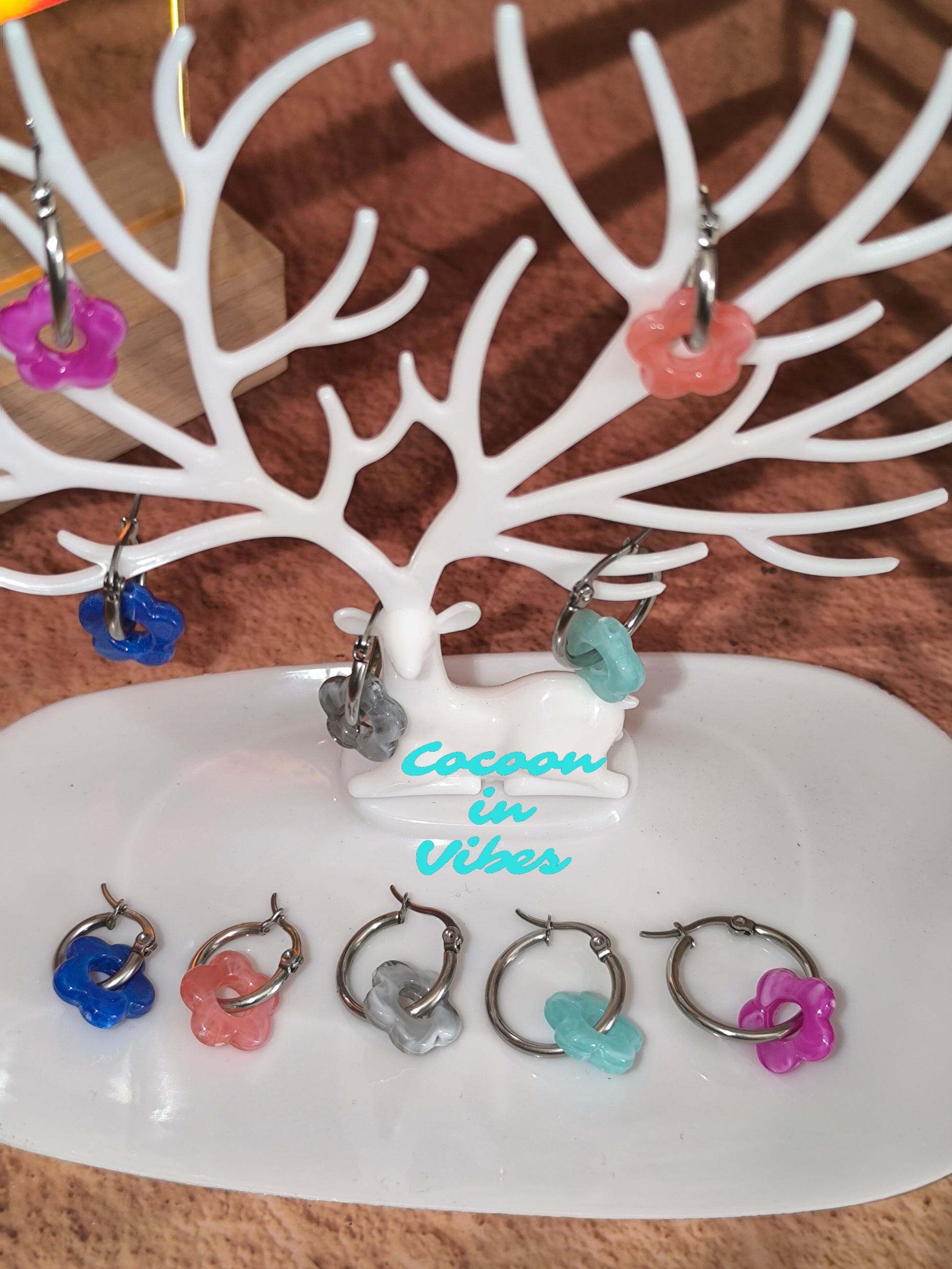 Chaque paire est agrémentée d’une délicate perle fleur en verre acrylique (plexi) marbré (diamètre 1,4 cm), pour une touche à la fois raffinée et colorée 🌈.
