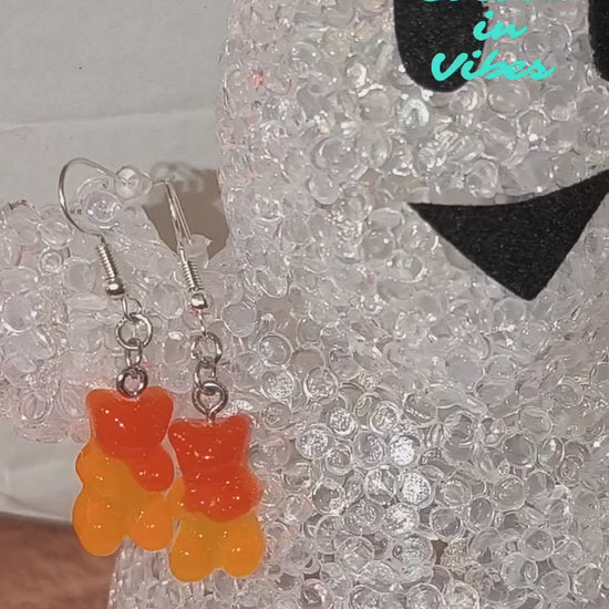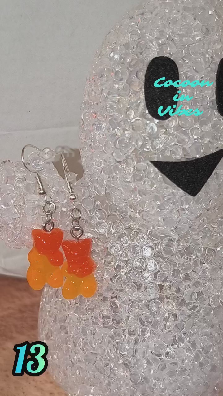 Boucles d’oreilles Nounours Gélifiés – N°13 Orange Foncé → Orange Clair Opaque Pailleté (Création artisanale Cocoon In Vibes)