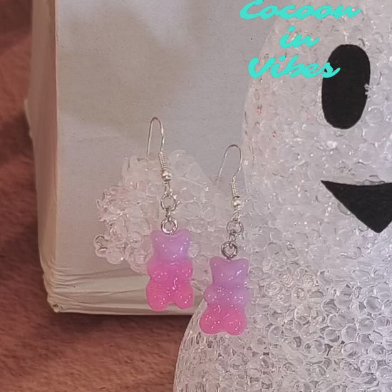 Boucles d’oreilles Nounours Gélifiés – N°2 Violet → Rose Fuchsia Opaque (Création artisanale Cocoon In Vibes)