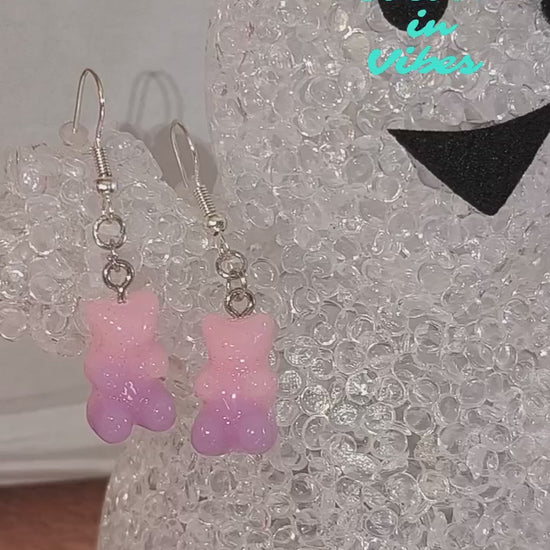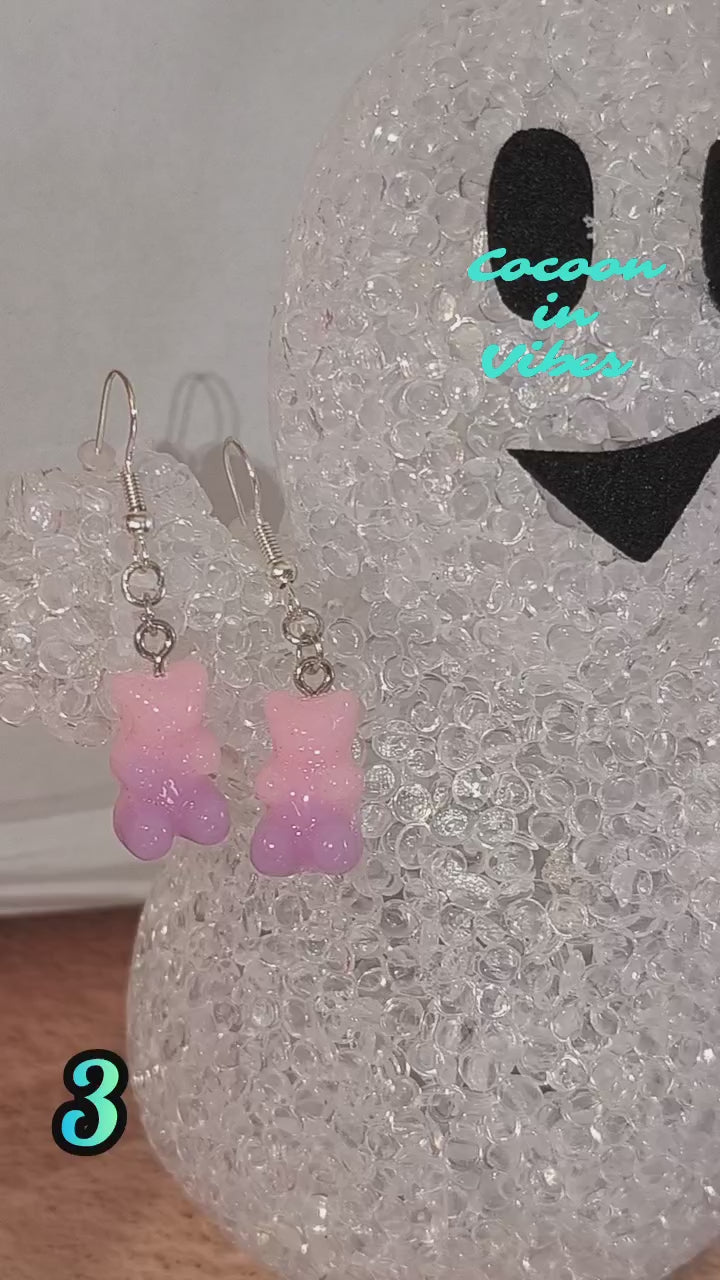 Boucles d’oreilles Nounours Gélifiés – N°3 Rose Claire → Parme Opaque Pailletée (Création artisanale Cocoon In Vibes)