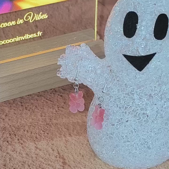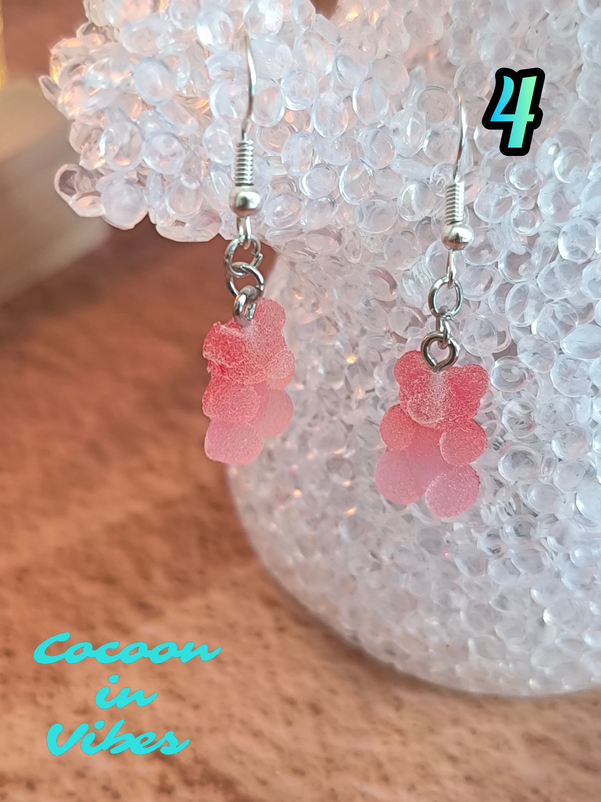 Boucles d’oreilles oursons “acidulés” n°4 – Rouge → Rose clair (effet sucre givré)