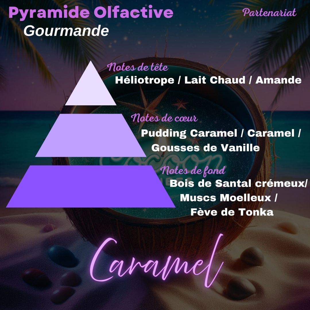 Sa fragrance dévoile un caramel profond, crémeux et légèrement musqué, adouci par des notes vanillées et boisées, pour une gourmandise raffinée et enveloppante.