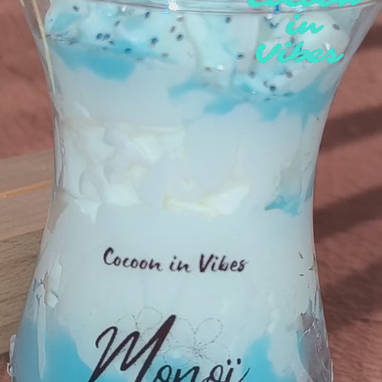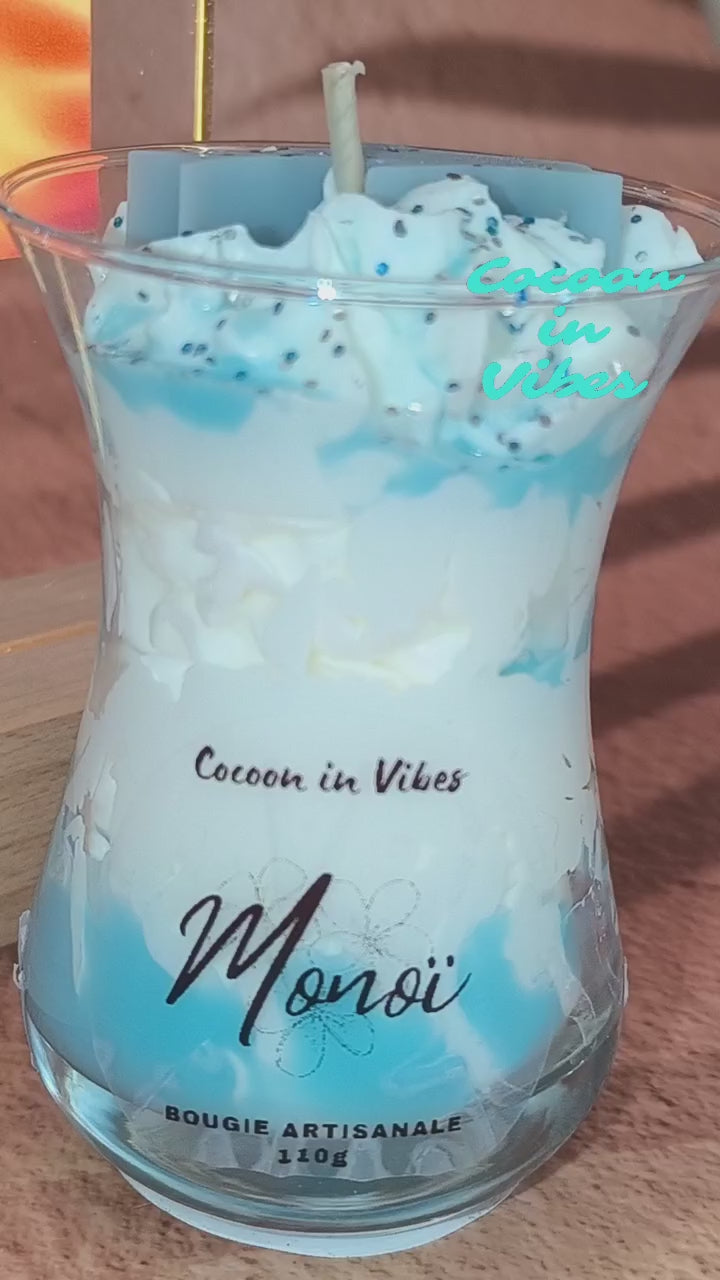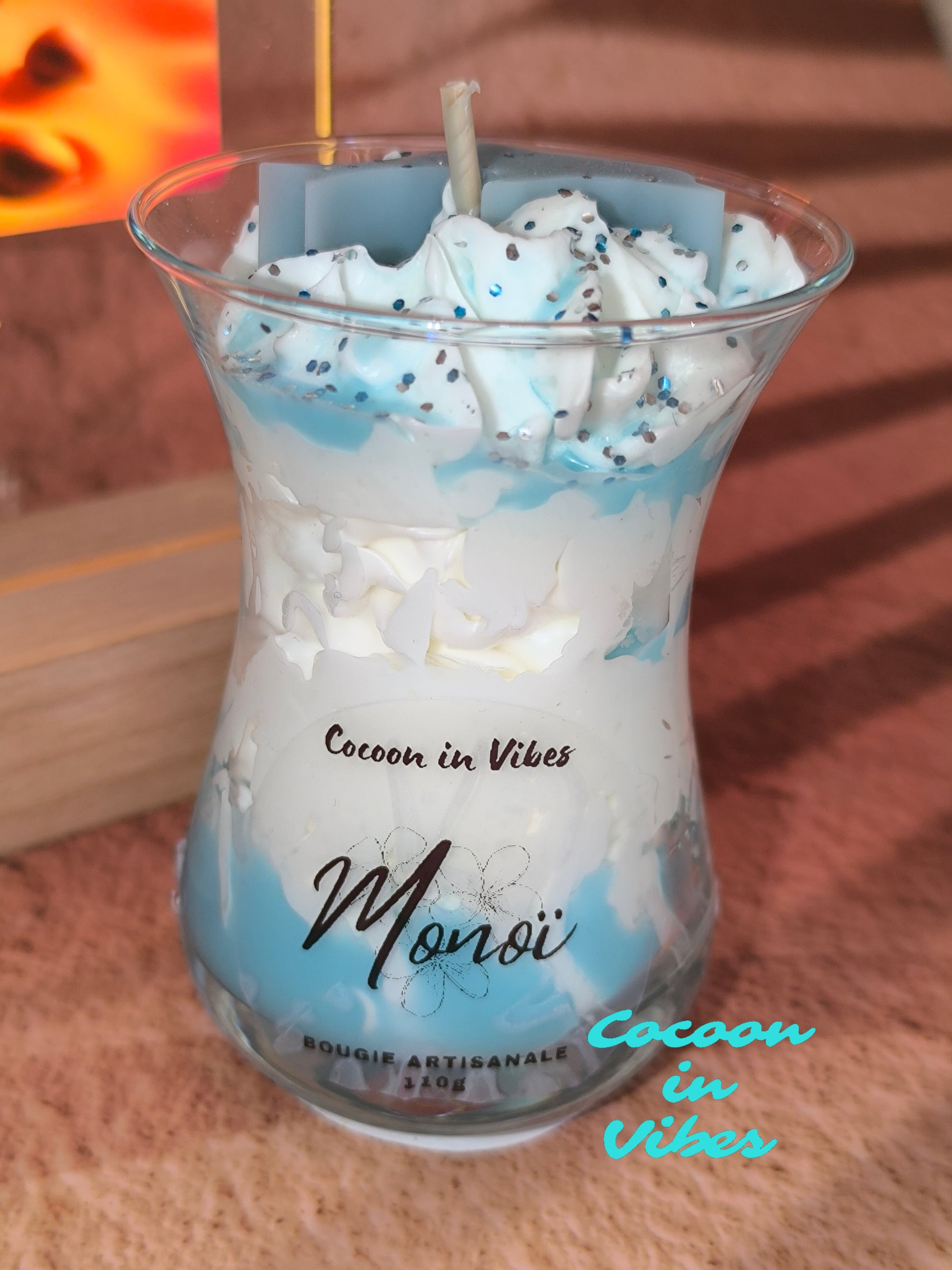 🌺 Embarquez pour un voyage olfactif ensoleillé avec notre bougie Monoï, une création artisanale exclusive imaginée et réalisée uniquement pour Cocoon In Vibes.
