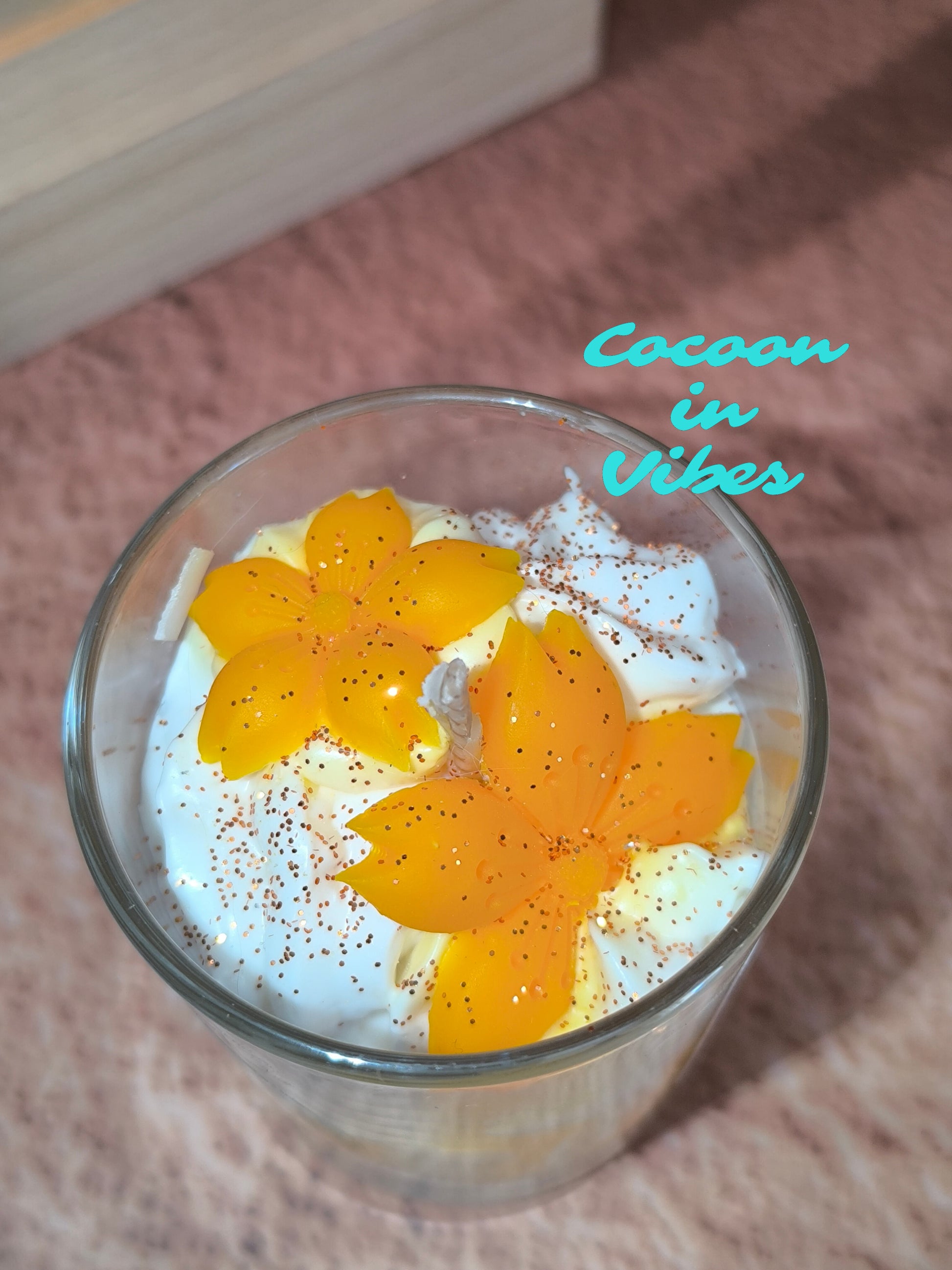 🌼 Ornée de deux jolies fleurs orange et d’un chantilly bicolore aérien, elle est bien plus qu’une simple bougie : un petit bijou de décoration qui sublime votre intérieur tout en diffusant un parfum floral envoûtant.