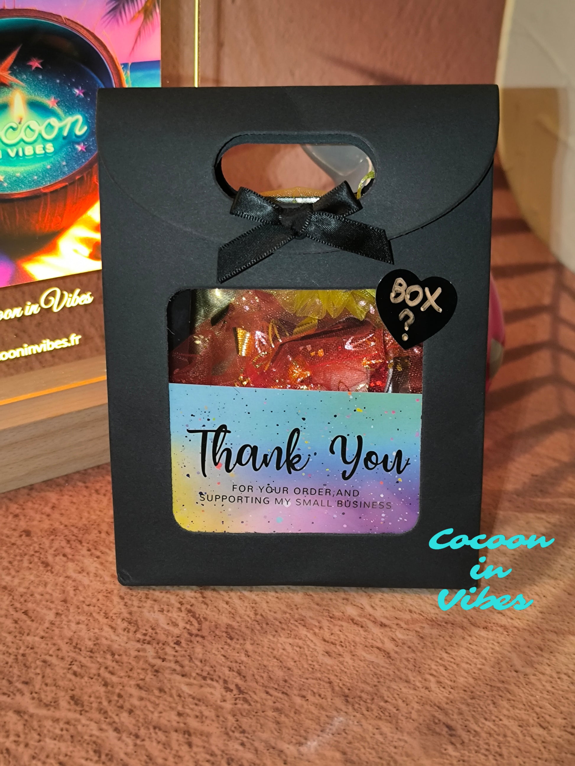 🪶 Chaque assortiment est préparé avec soin par mes mains, en fonction de vos choix… mais en gardant toujours la part de mystère et de surprise qui rend la box unique.