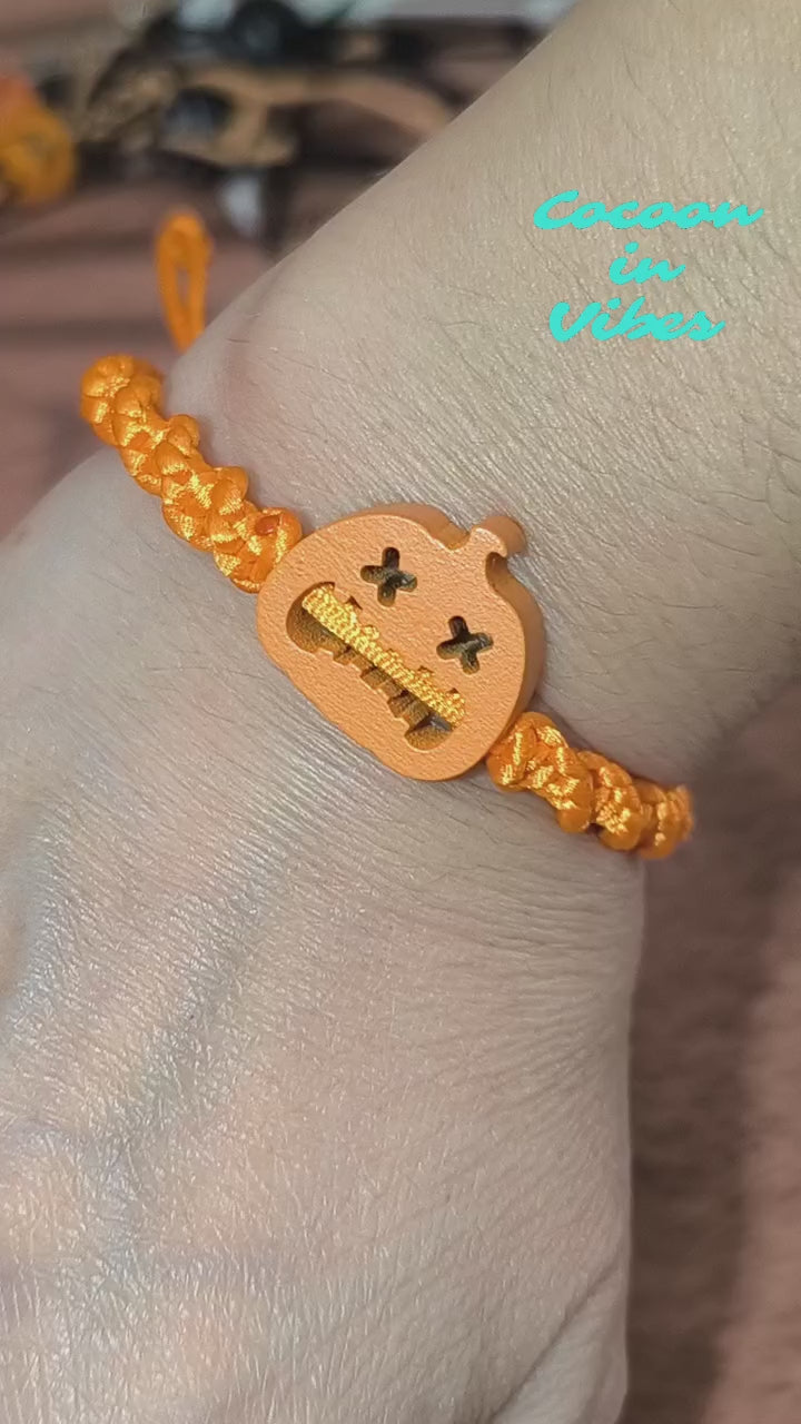 🎃 Bracelet Citrouille en Macramé – Artisanat fait main