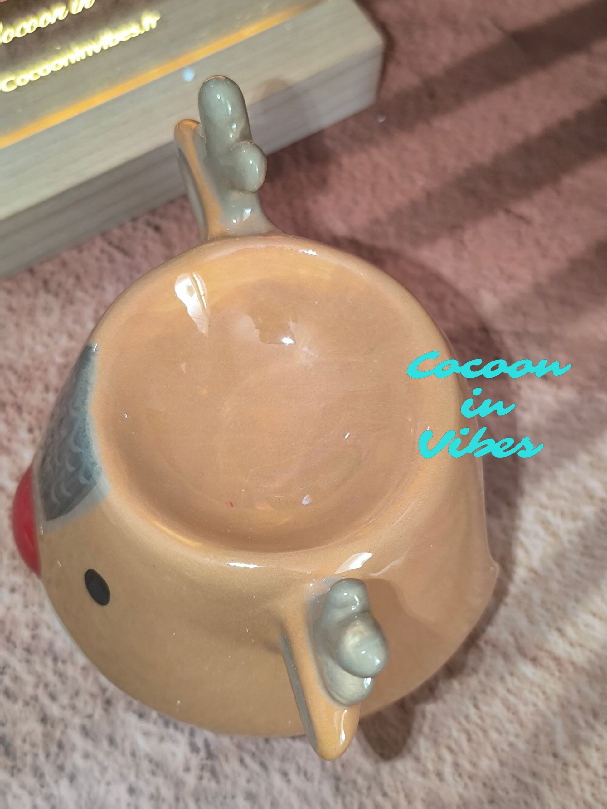 💫 Son design : un joli renne de Noël aux finitions soignées, avec une coupelle intégrée sur le dessus pour y déposer ton fondant parfumé préféré 🕯️