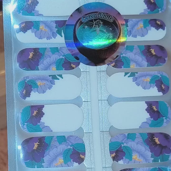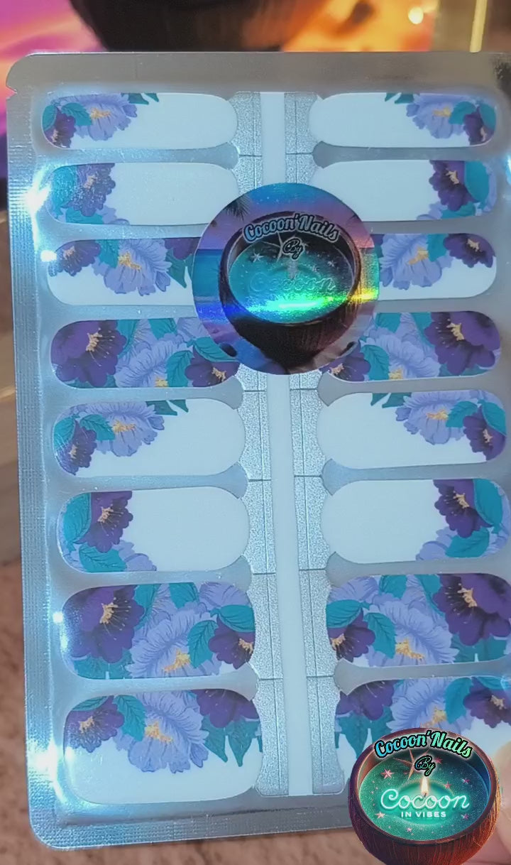 Laisse éclore la poésie florale au bout des doigts avec Violet Garden, des bandelettes en vrai vernis inspirées des jardins fleuris où les fleurs violettes et bleutées s’épanouissent avec élégance 🌸✨