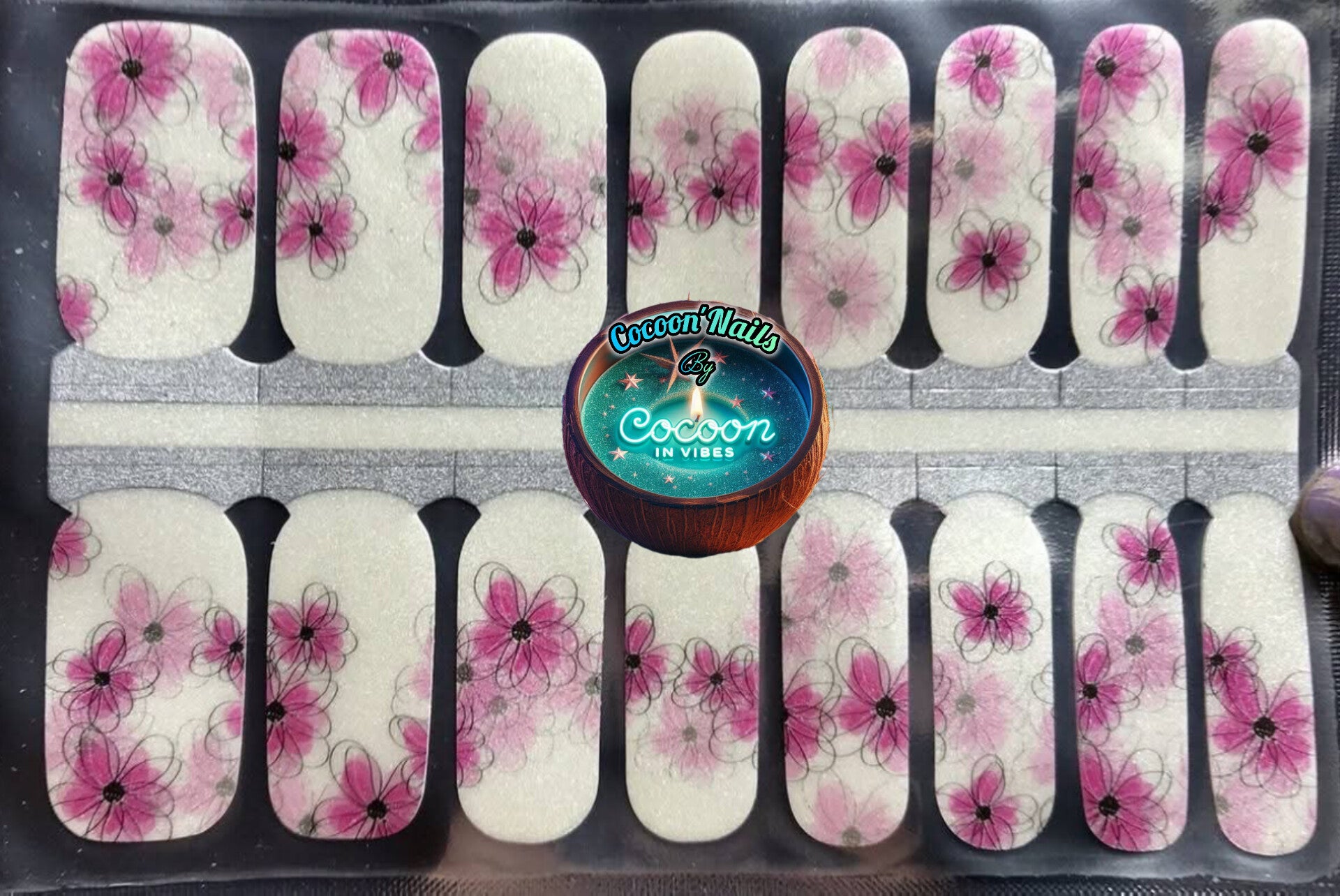 Laisse éclore la douceur artistique au bout des doigts avec Watercolor Flowers, des bandelettes en vrai vernis inspirées de délicates fleurs roses et mauves comme peintes à l’aquarelle sur une toile lumineuse 🌸✨
