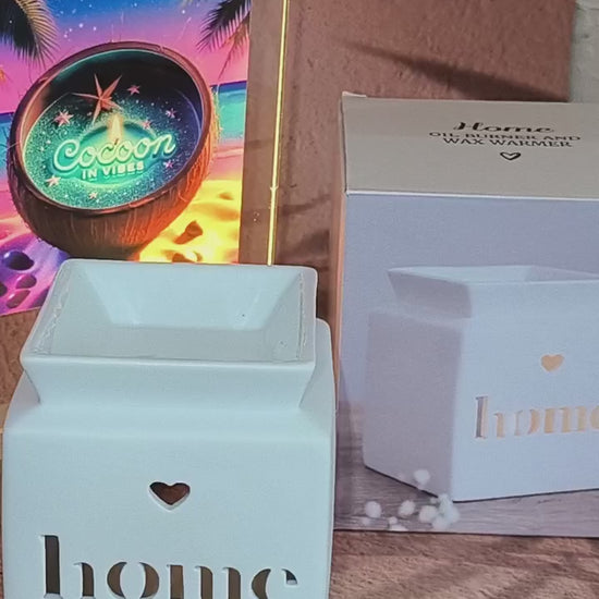 Apportez une touche de douceur et de style à votre intérieur avec ce magnifique diffuseur carré en céramique blanche 🤍. Son design épuré et moderne met en avant le mot HOME 🏠, pour un effet cosy et chaleureux. La coupelle carrée sur le dessus est parfaitement intégrée au diffuseur, idéale pour accueillir vos fondants parfumés 🌸 ou huiles essentielles 🌿 favorites.