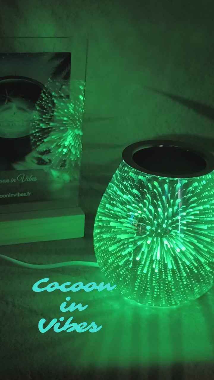 Plongez votre intĂ©rieur dans une atmosphĂšre fascinante avec cette lampe diffuseur Ă chaleur douce effet 3D. Son incroyable trompe-lâĆil multicolore vous hypnotise dĂšs quâelle sâillumine, crĂ©ant un vĂ©ritable spectacle lumineux et parfumĂ©.