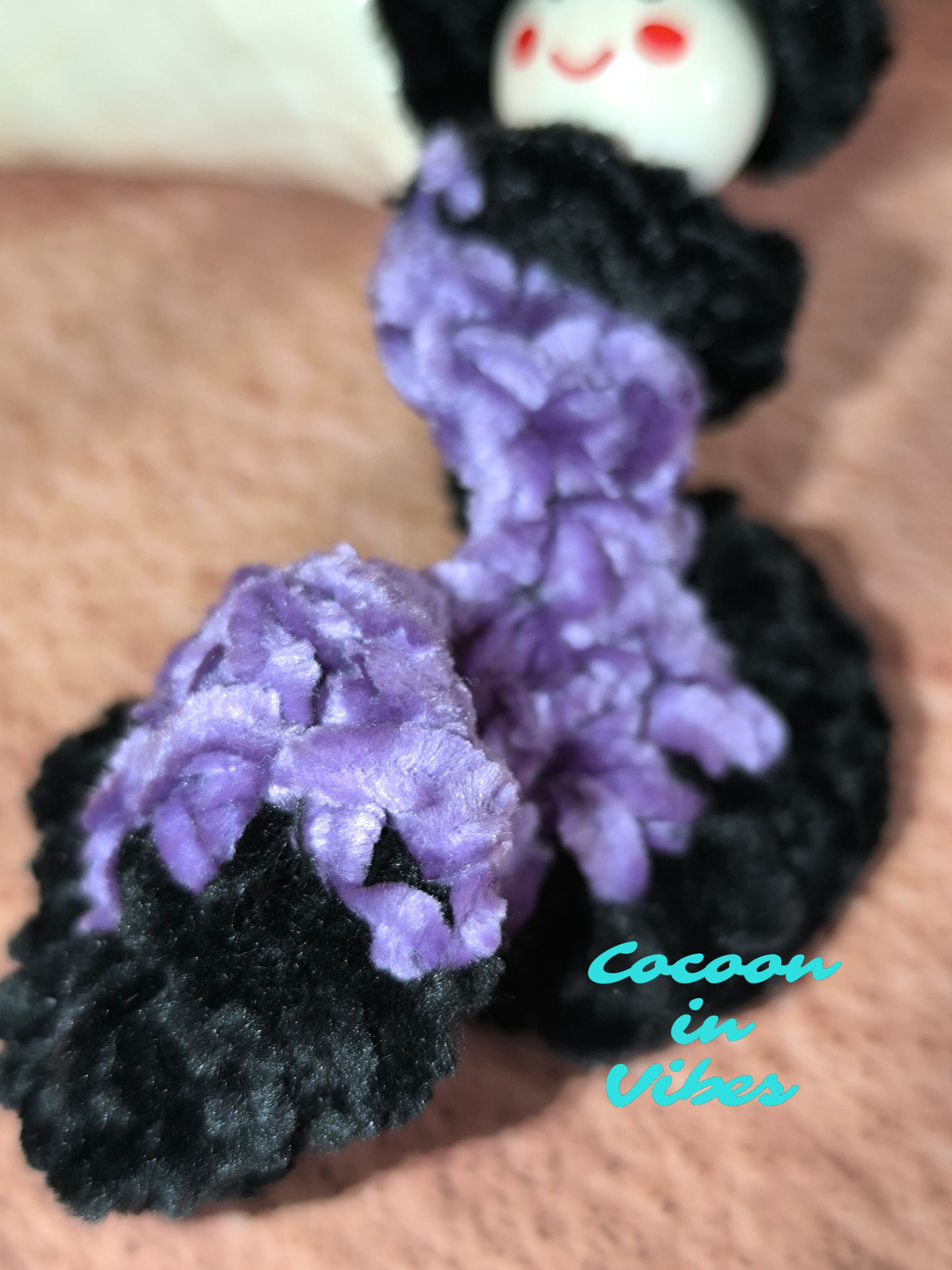 Un corps moelleux en laine chenille douce, qui rappelle les petits grigris porte-bonheur.